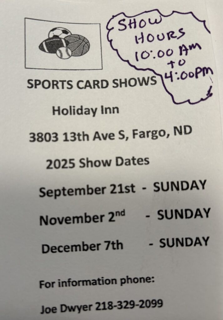 We strive to have every single card show, trade night, and autograph signing in the state and bordering communities all here in one spot. If you are aware of any events that we don’t have listed, please email info@cardsota.com and we’ll get it added right away!