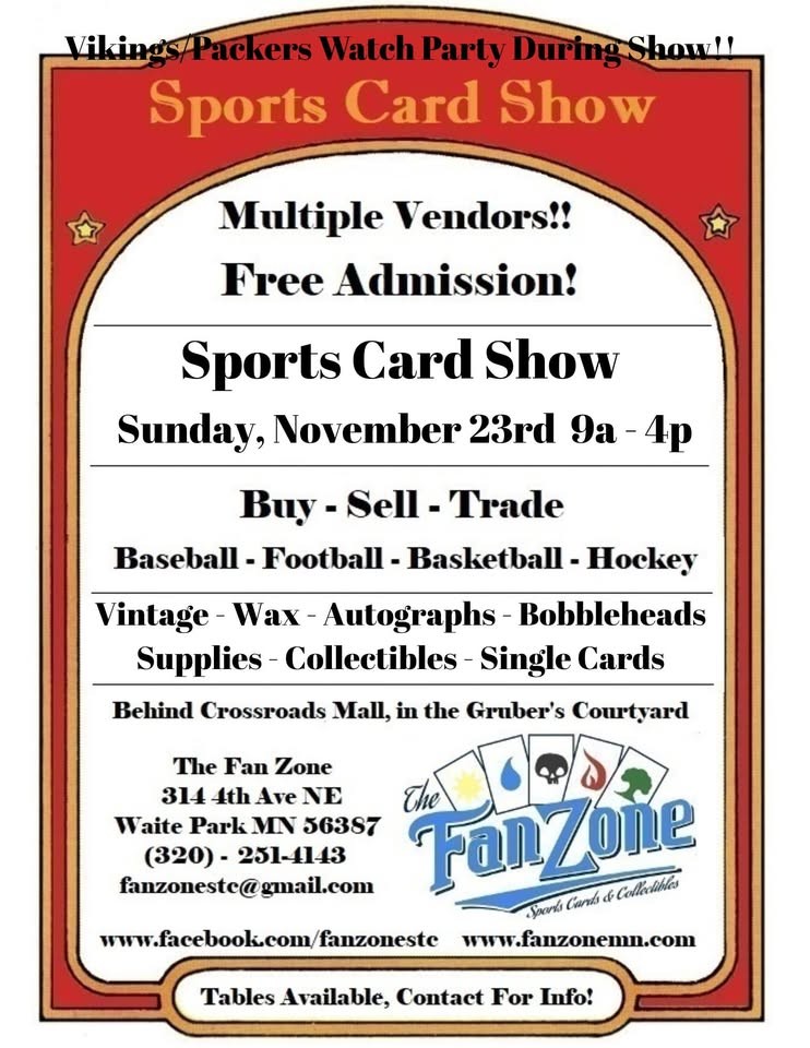 We strive to have every single card show, trade night, and autograph signing in the state and bordering communities all here in one spot. If you are aware of any events that we don’t have listed, please email info@cardsota.com and we’ll get it added right away!