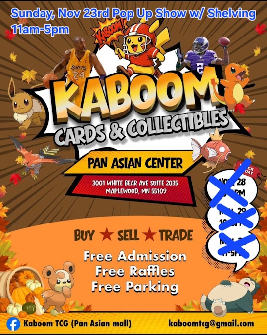 We strive to have every single card show, trade night, and autograph signing in the state and bordering communities all here in one spot. If you are aware of any events that we don’t have listed, please email info@cardsota.com and we’ll get it added right away!
