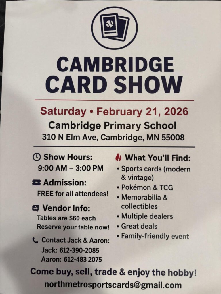 We strive to have every single card show, trade night, and autograph signing in the state and bordering communities all here in one spot. If you are aware of any events that we don’t have listed, please email info@cardsota.com and we’ll get it added right away!