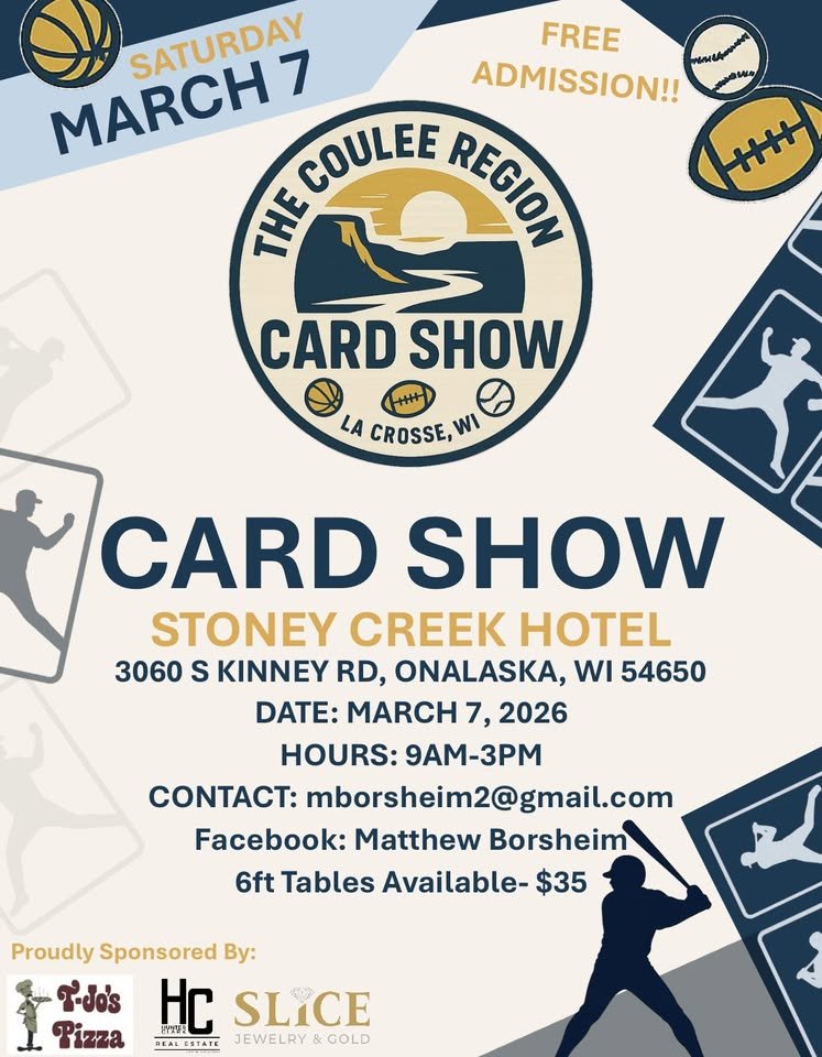 We strive to have every single card show, trade night, and autograph signing in the state and bordering communities all here in one spot. If you are aware of any events that we don’t have listed, please email info@cardsota.com and we’ll get it added right away!