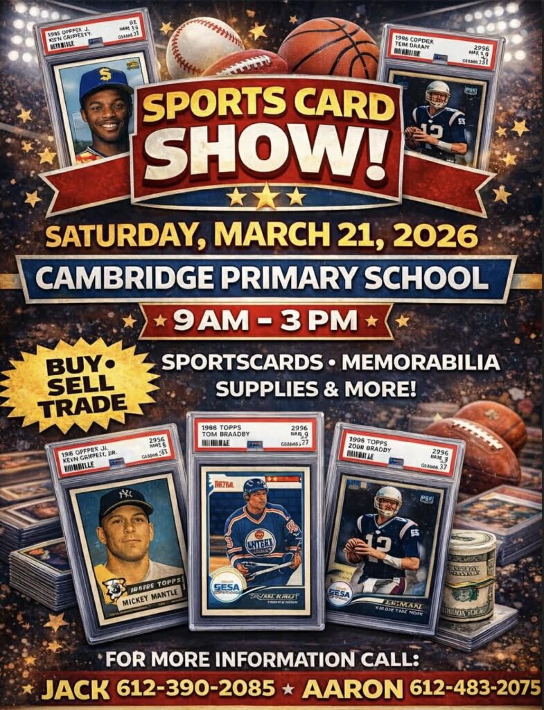 We strive to have every single card show, trade night, and autograph signing in the state and bordering communities all here in one spot. If you are aware of any events that we don’t have listed, please email info@cardsota.com and we’ll get it added right away!