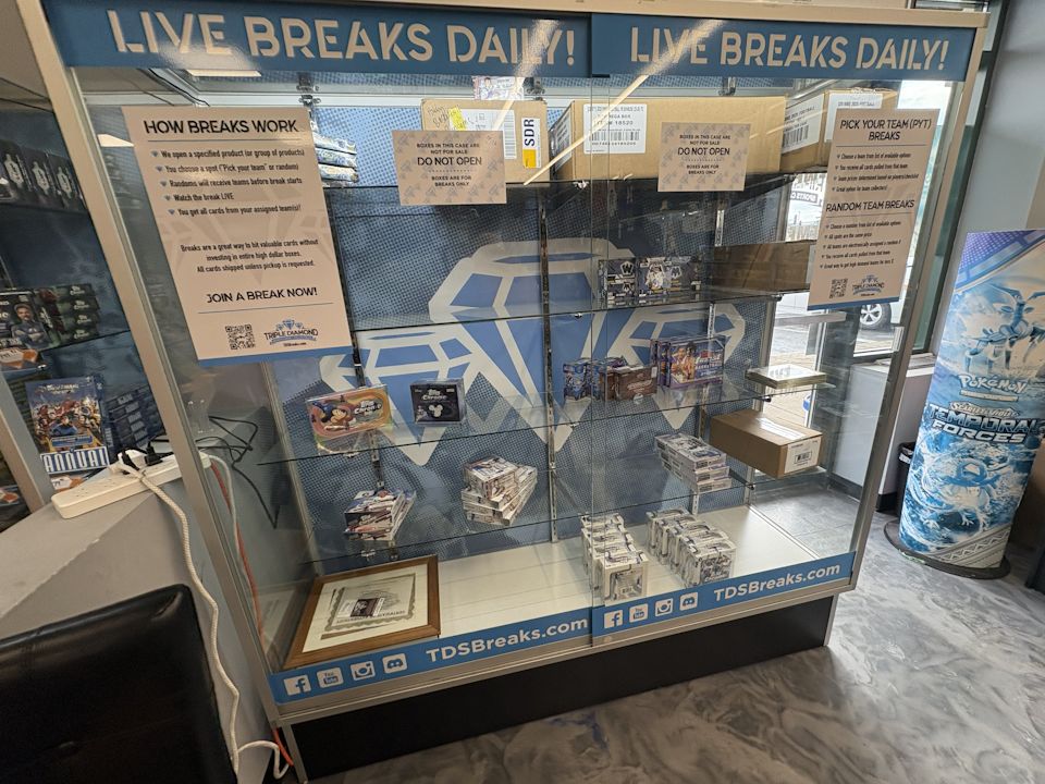 Triple Diamond goes out of its way to help collectors make informed decisions. They have menus like you’d see at a restaurant that describe all of the sealed products – they list hits, rookies, key players, and pack odds for each product. The breaks display case includes a simple explanation of how breaks work. These touches make the store more accessible for newcomers while still serving experienced collectors. Beyond retail, they offer several services such as eBay consignment, grading reviews and submissions.